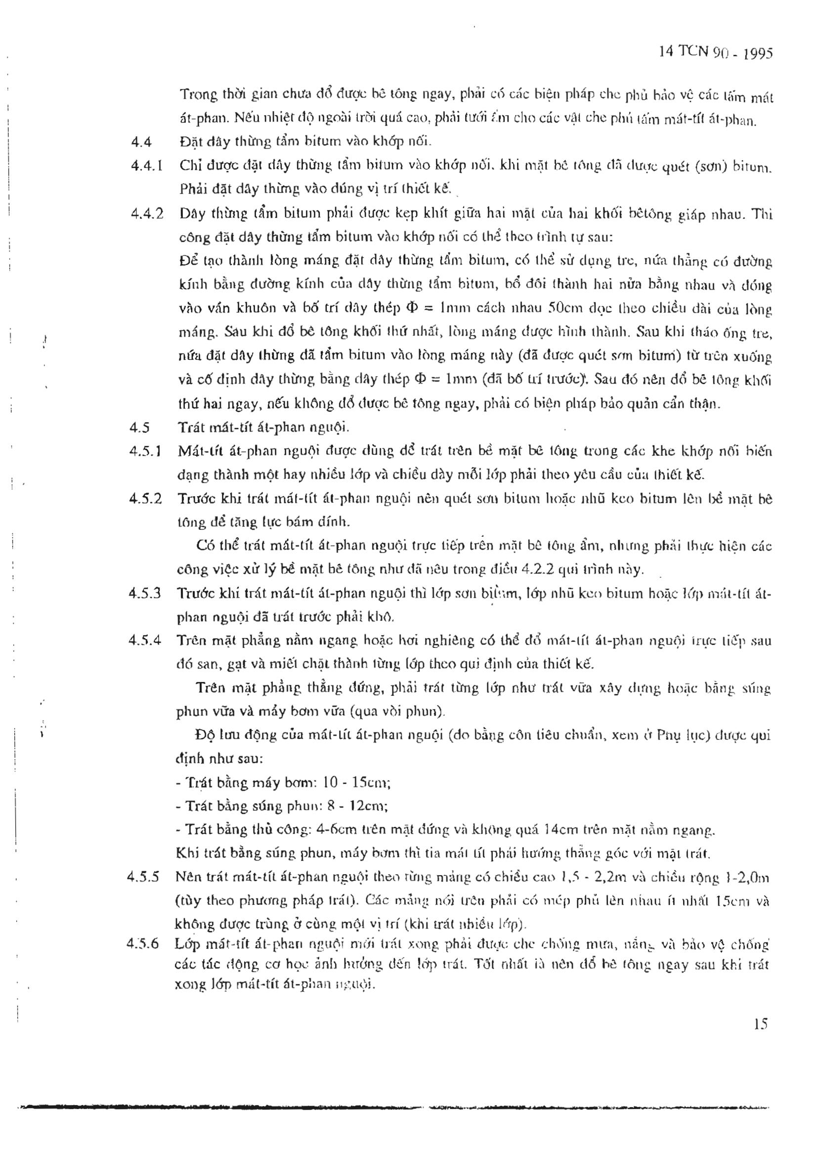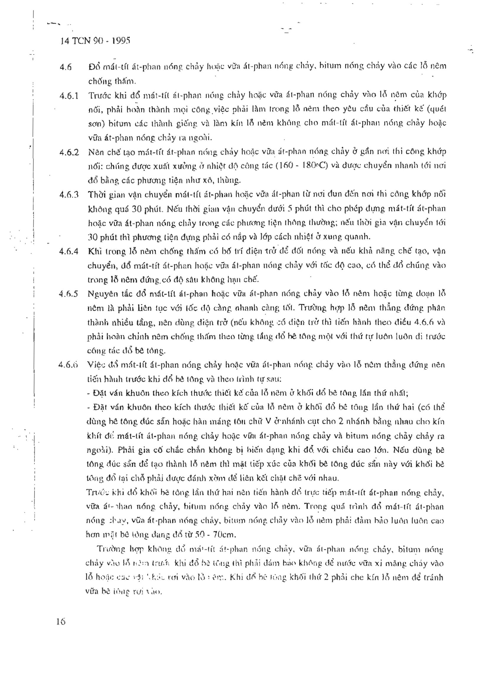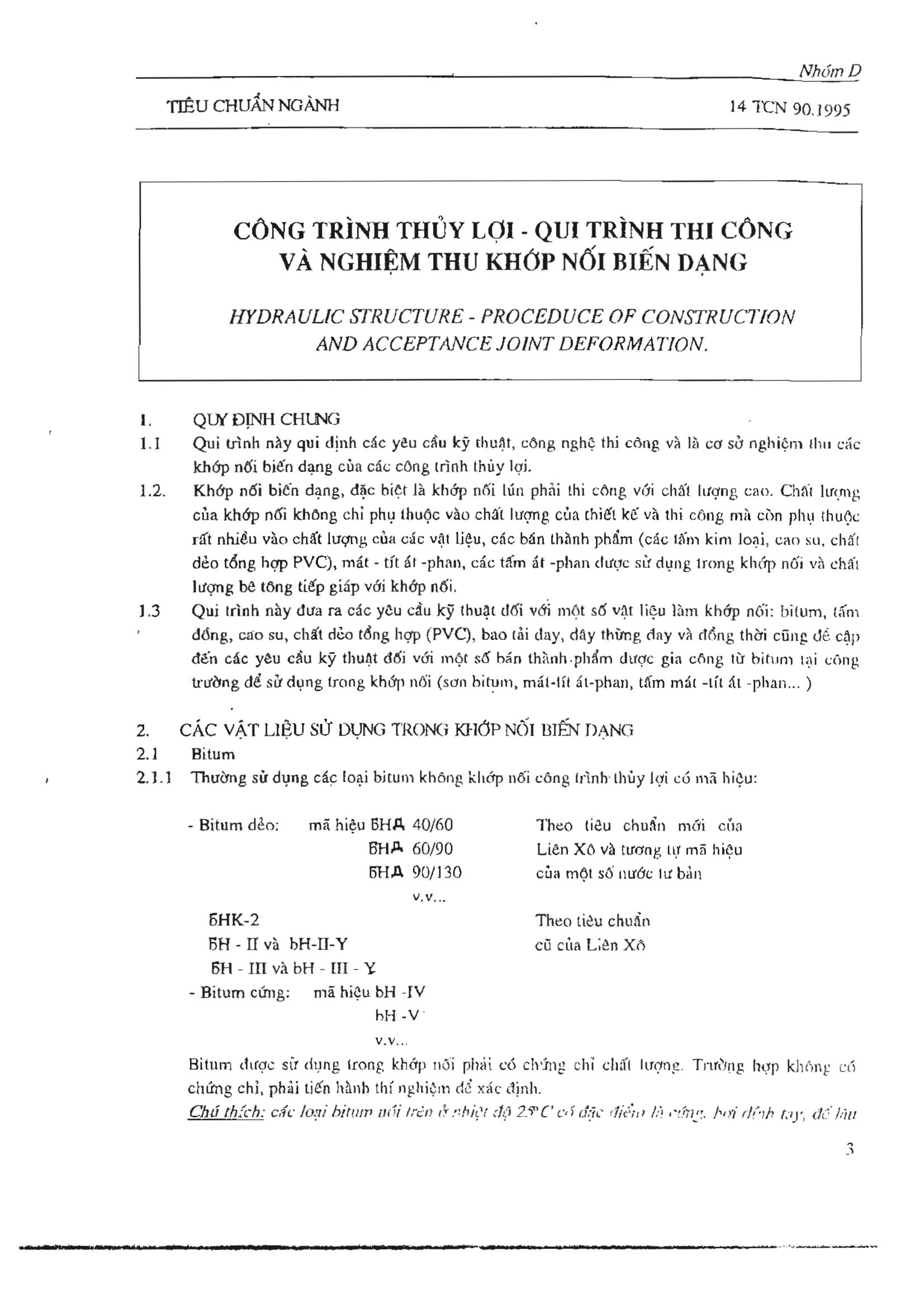 Tiêu chuẩn ngành 14TCN 90:1995 về Công trình thủy lợi - Quy trình thi công và nghiệm thu khớp nối biến dạng
