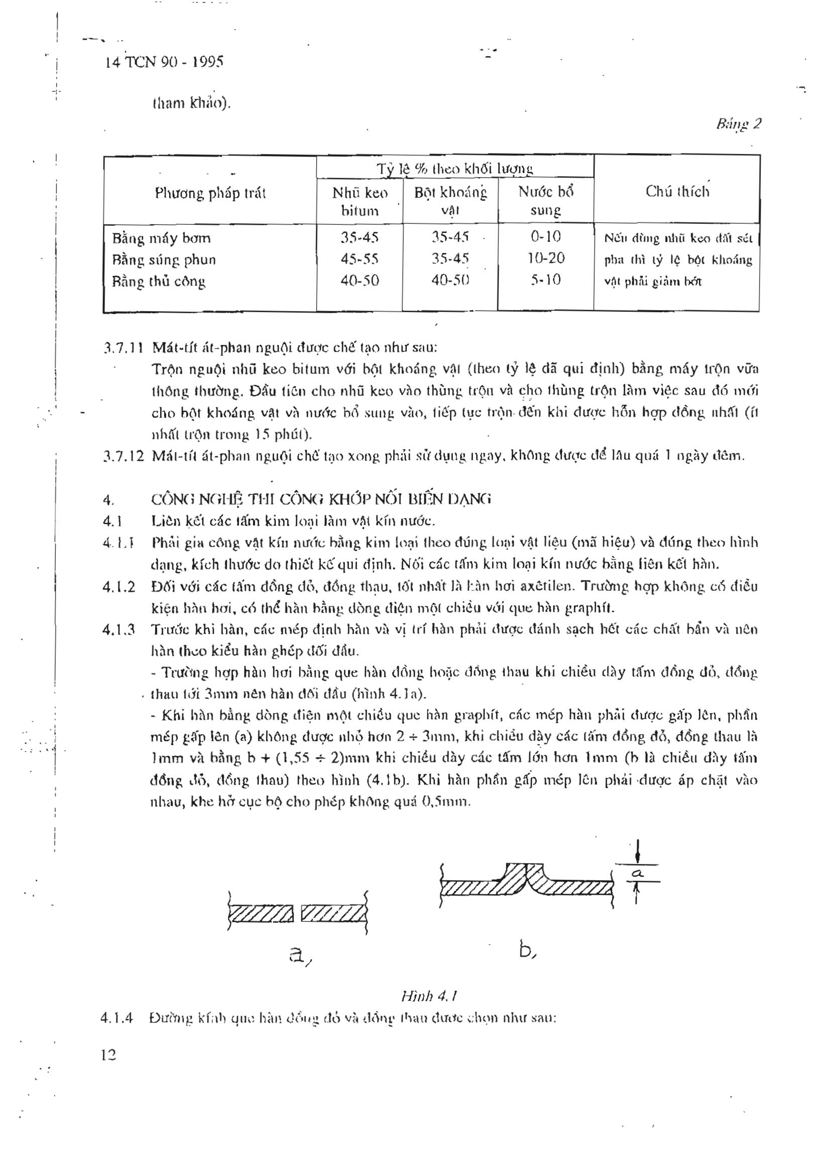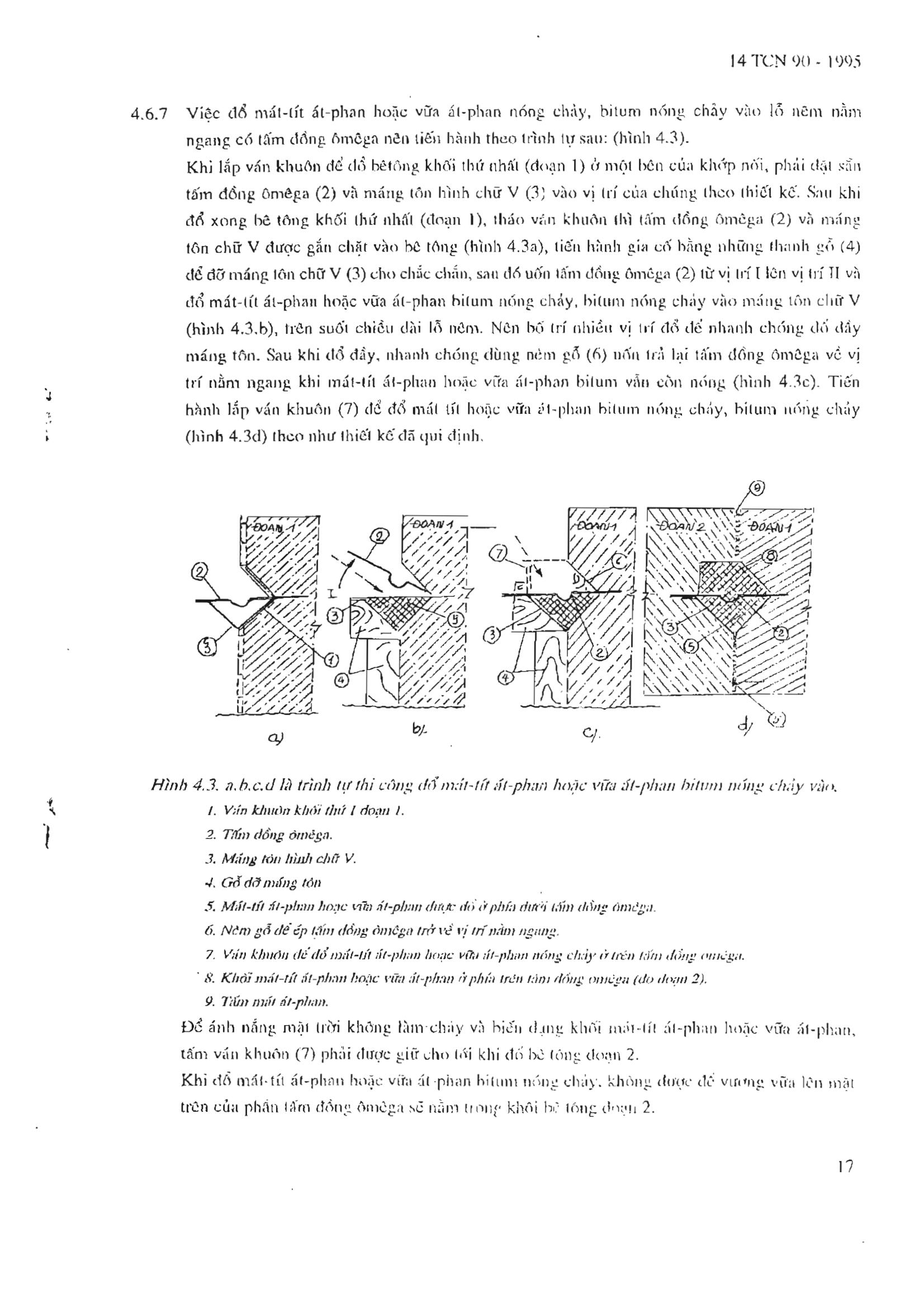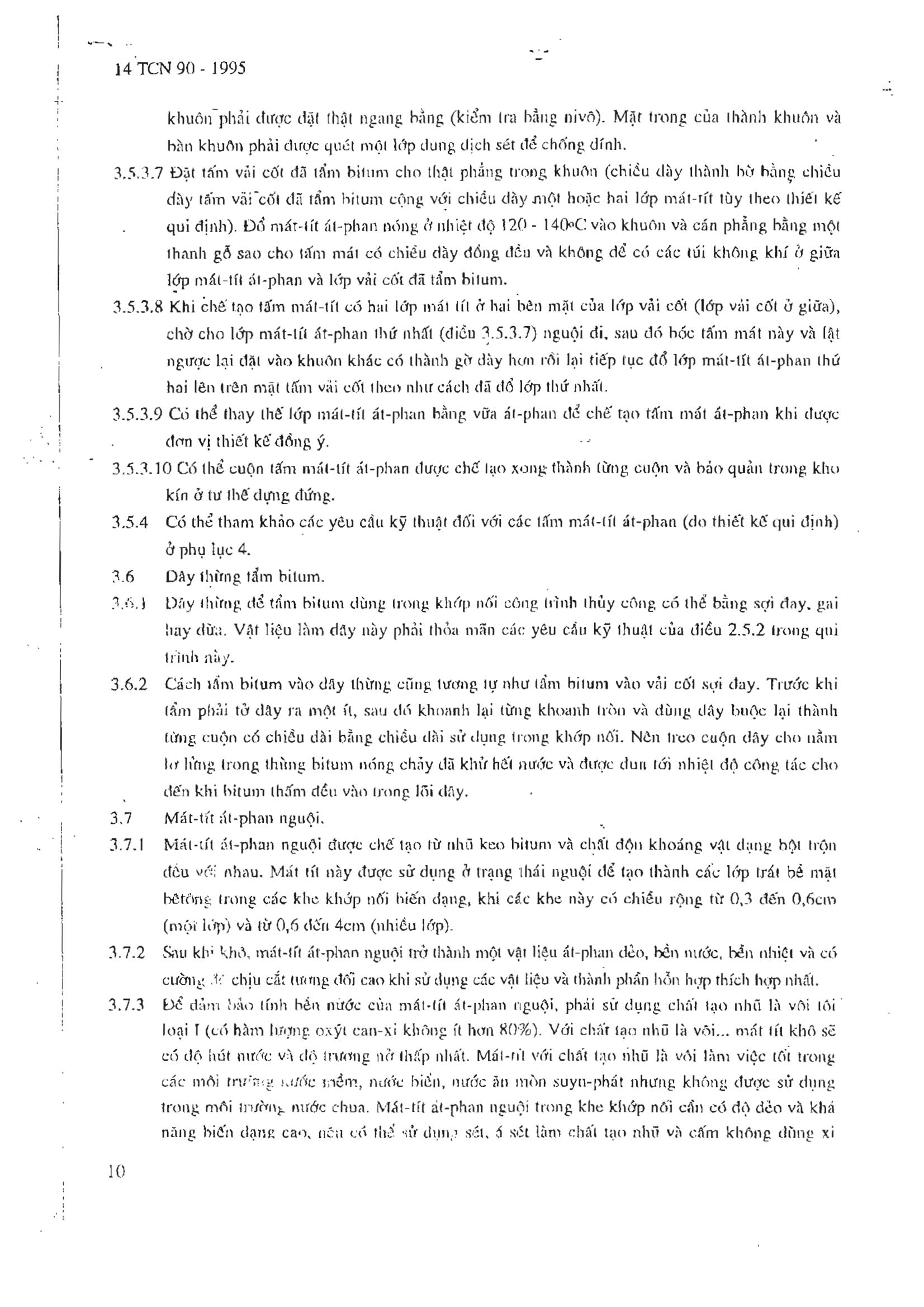 Tiêu chuẩn ngành 14TCN 90:1995 về Công trình thủy lợi - Quy trình thi công và nghiệm thu khớp nối biến dạng
