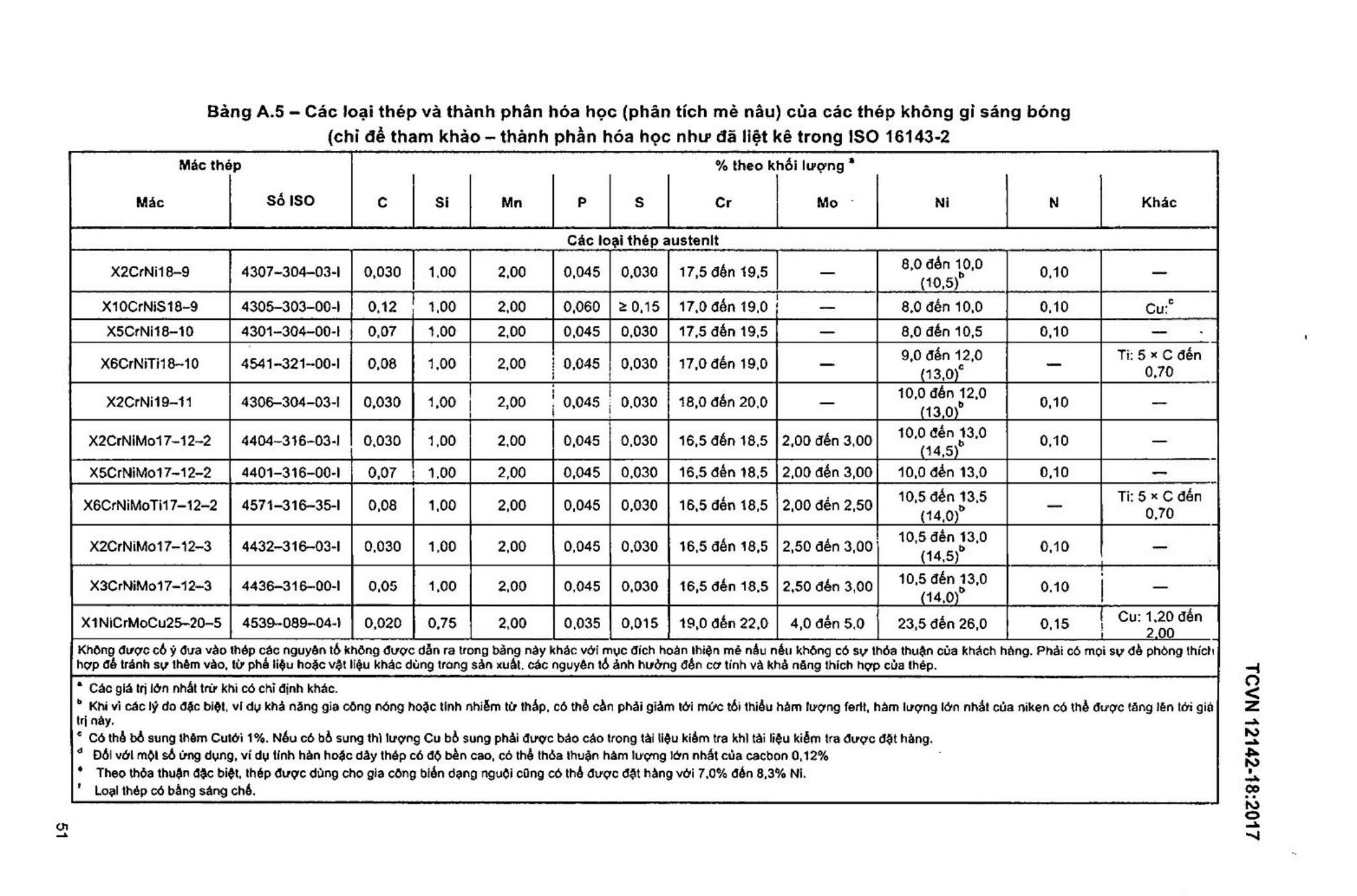 - 3Tiêu chuẩn quốc gia TCVN 12109-1:2017 (ISO 16143-1:2014) về Thép không gỉ thông dụng - Phần 1: Sản phẩm phẳng chịu ăn mòn