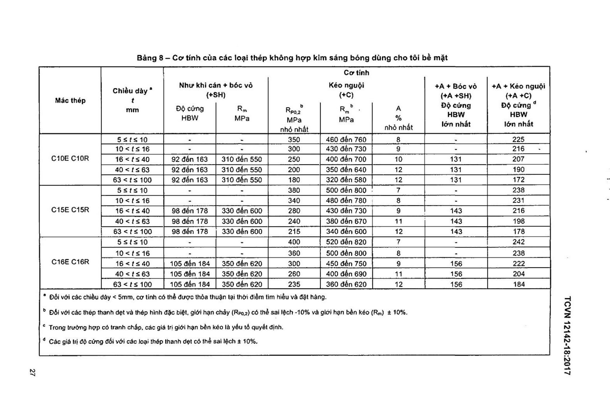 Tiêu chuẩn quốc gia TCVN 12142-18:2017 (ISO 683-18:2014) về Thép nhiệt luyện, thép hợp kim và thép dễ cắt - Phần 18: Sản phẩm thép sáng bóng