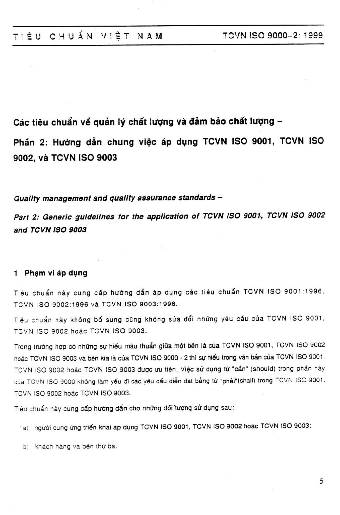 Tiêu chuẩn Việt Nam TCVN ISO 9000-2:1999 về Các tiêu chuẩn về quản lý chất lượng và đảm bảo chất lượng - Phần 2: Hướng dẫn chung việc áp dụng TCVN ISO 9001, TCVN ISO 9002, TCVN ISO 9003