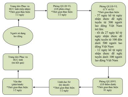 15 | Đề nghị tuyển người lao động Việt Nam vào các vị trí công việc dự kiến tuyển người lao động nước ngoài của nhà thầu Thời gian giải quyết: 02 tháng kể từ ngày nhận được đề nghị tuyển từ 500 người lao động Việt Nam trở lên và tối đa 01 tháng kể từ ngày nhận được đề nghị tuyển từ 100 đến dưới 500 người lao động Việt Nam và 15 ngày kể từ ngày nhận được đề nghị tuyển dưới 100 người lao động Việt Nam kể từ ngày nhận đủ hồ sơ hợp lệ theo quy định | |