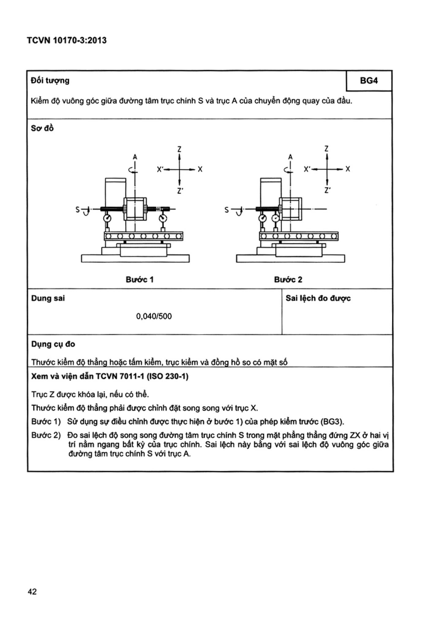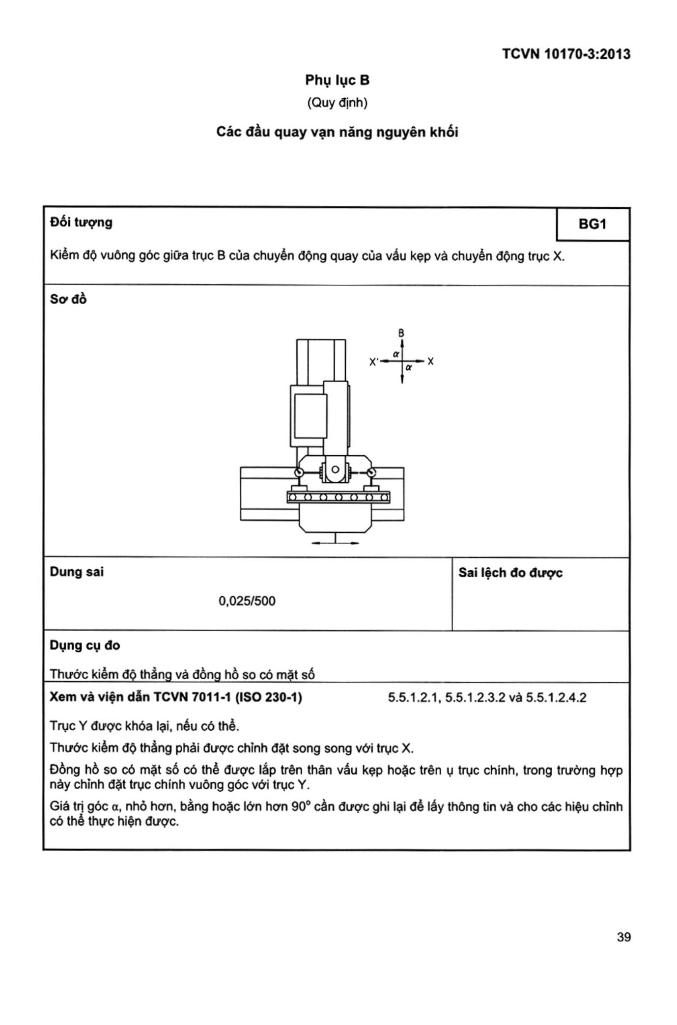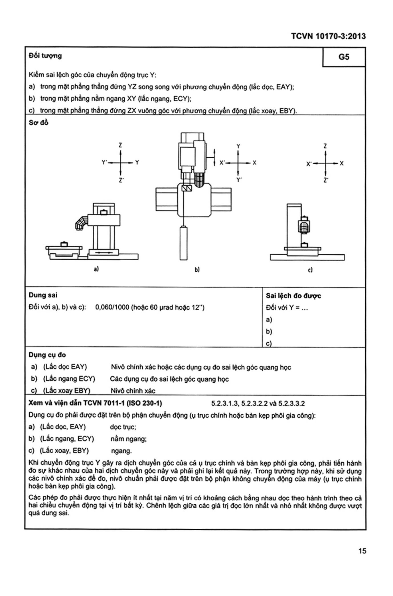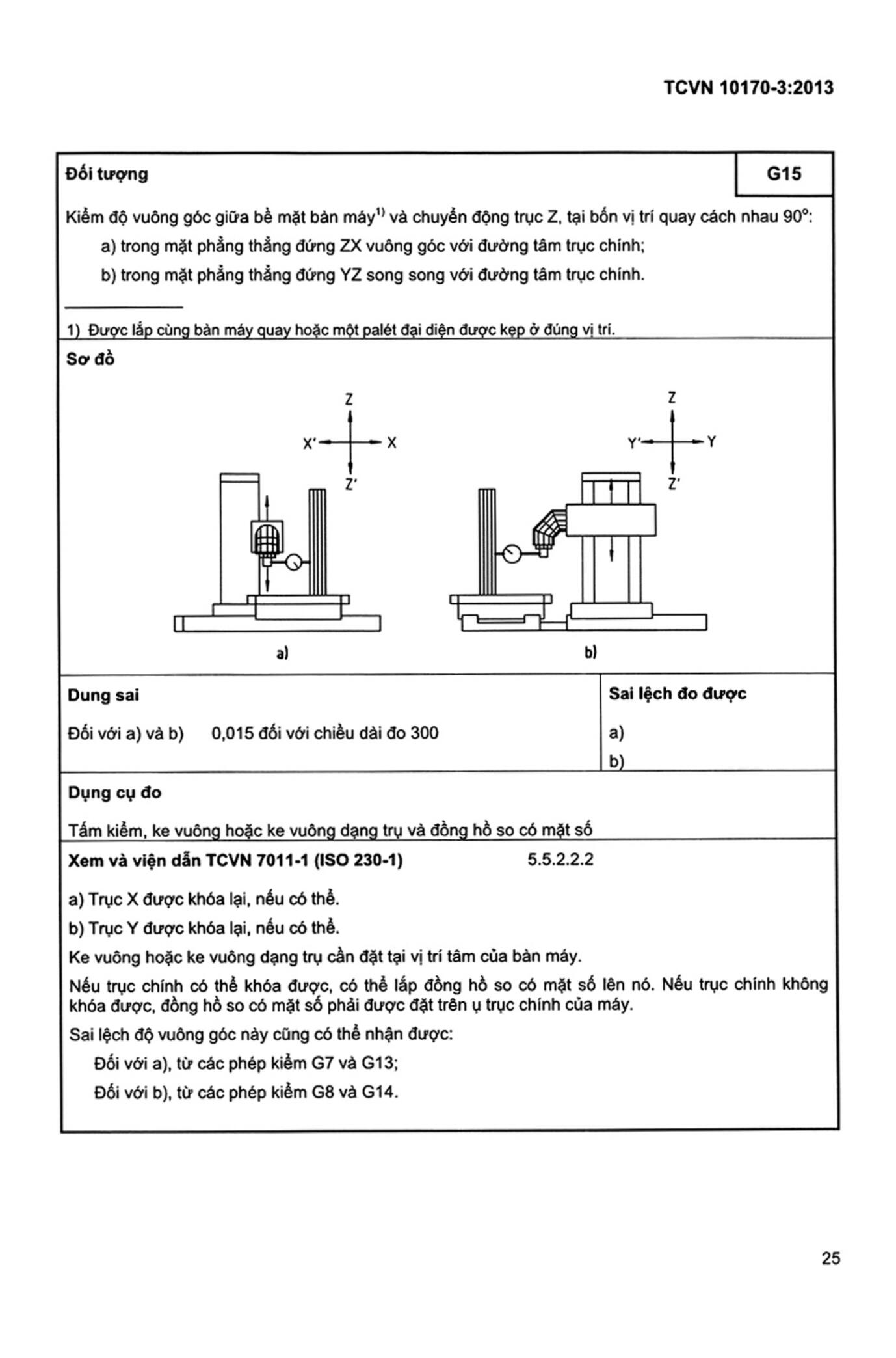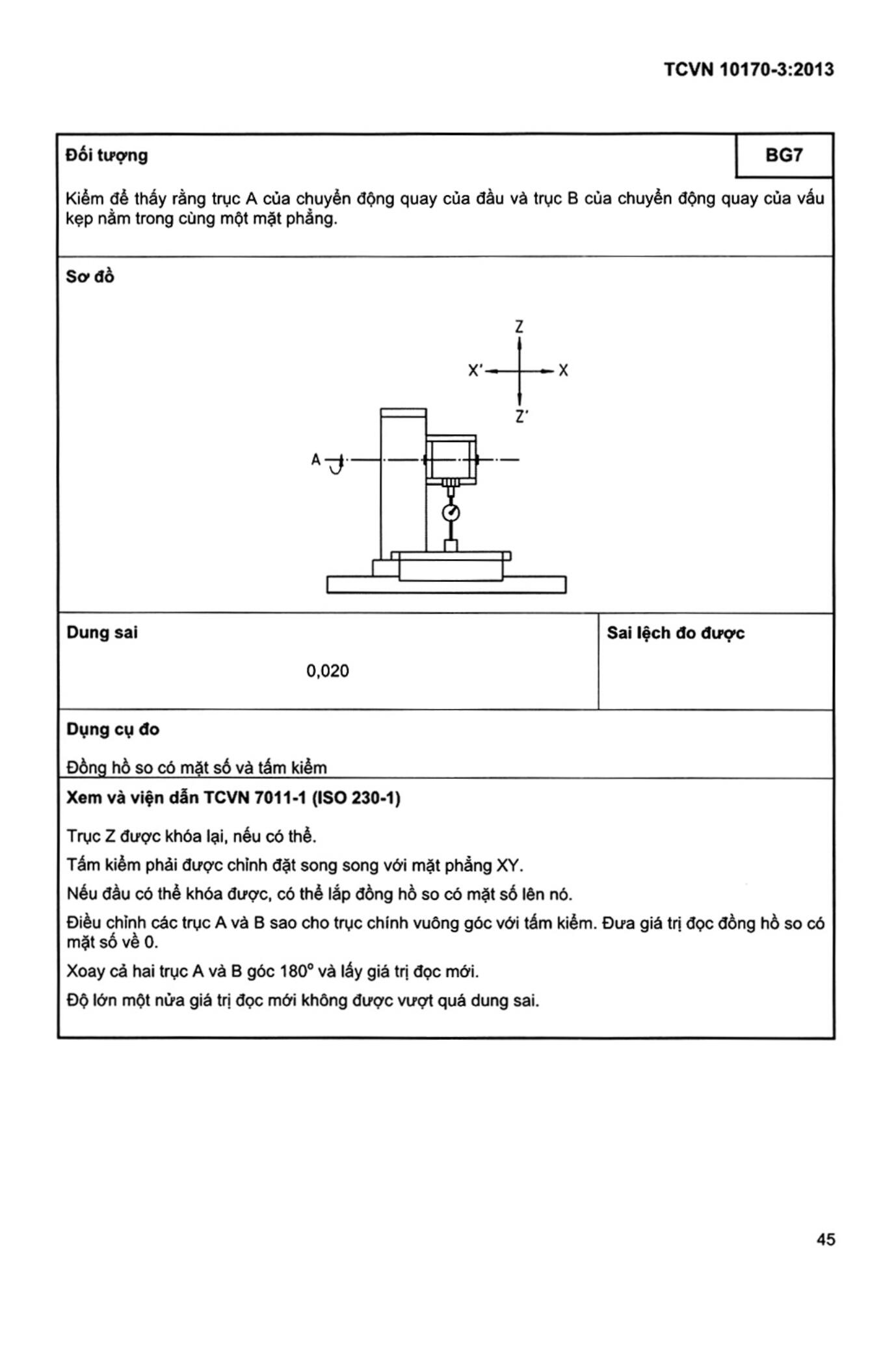 Tiêu chuẩn quốc gia TCVN 10170-3:2013 về Điều kiện kiểm trung tâm gia công - Phần 3: Kiểm hình học cho máy có các đầu phân độ nguyên khối hoặc vạn năng liên tục (trục Z thẳng đứng)