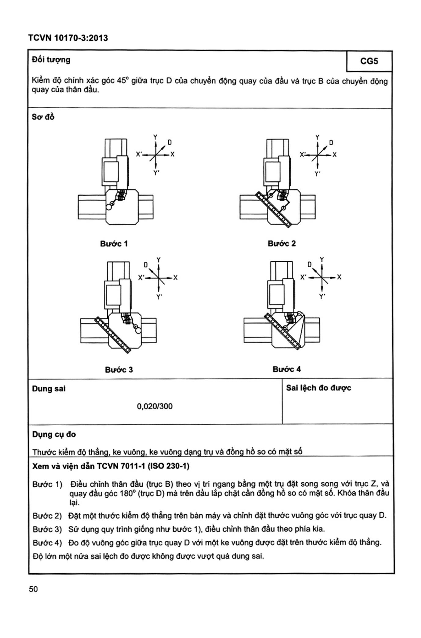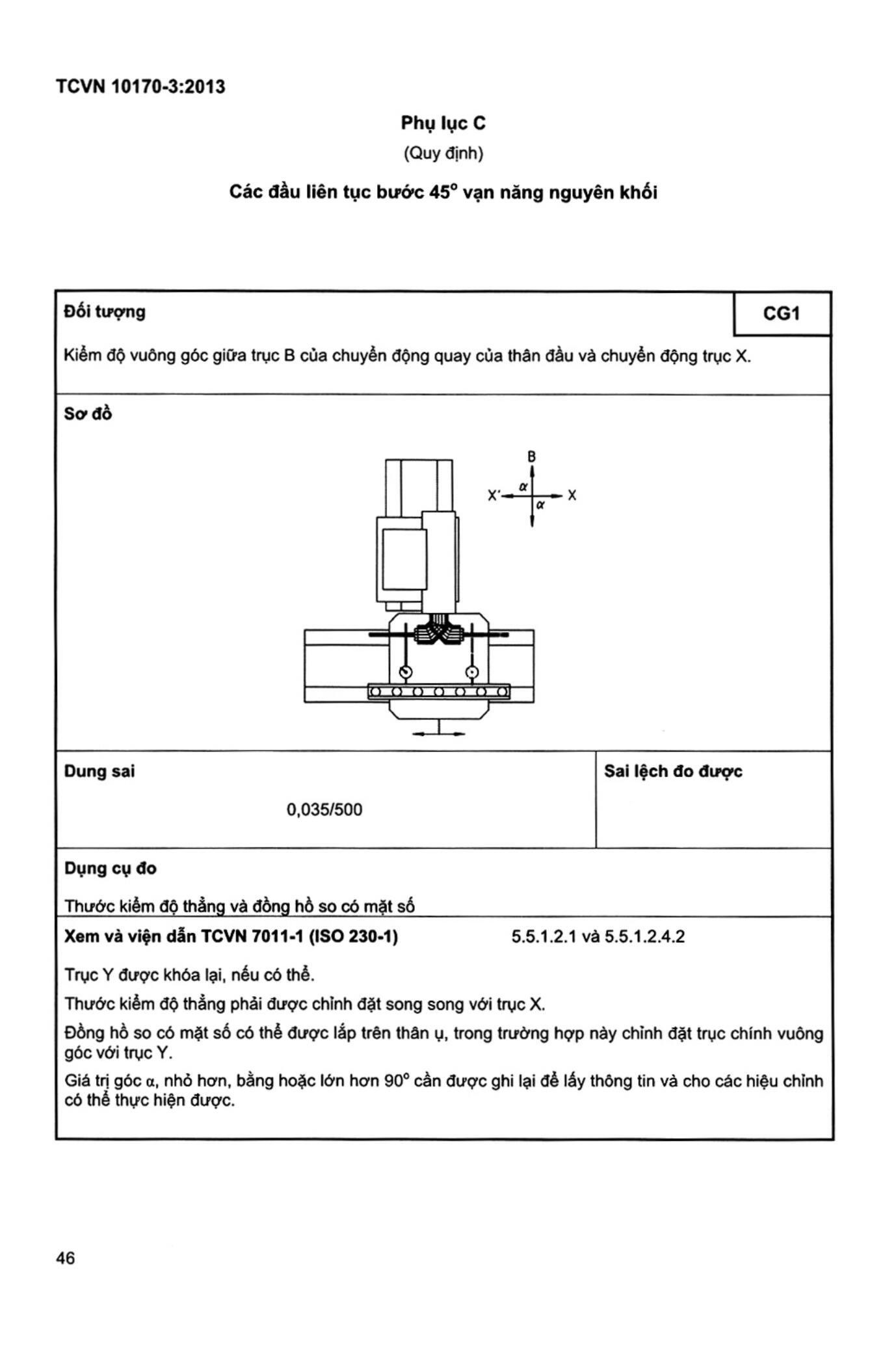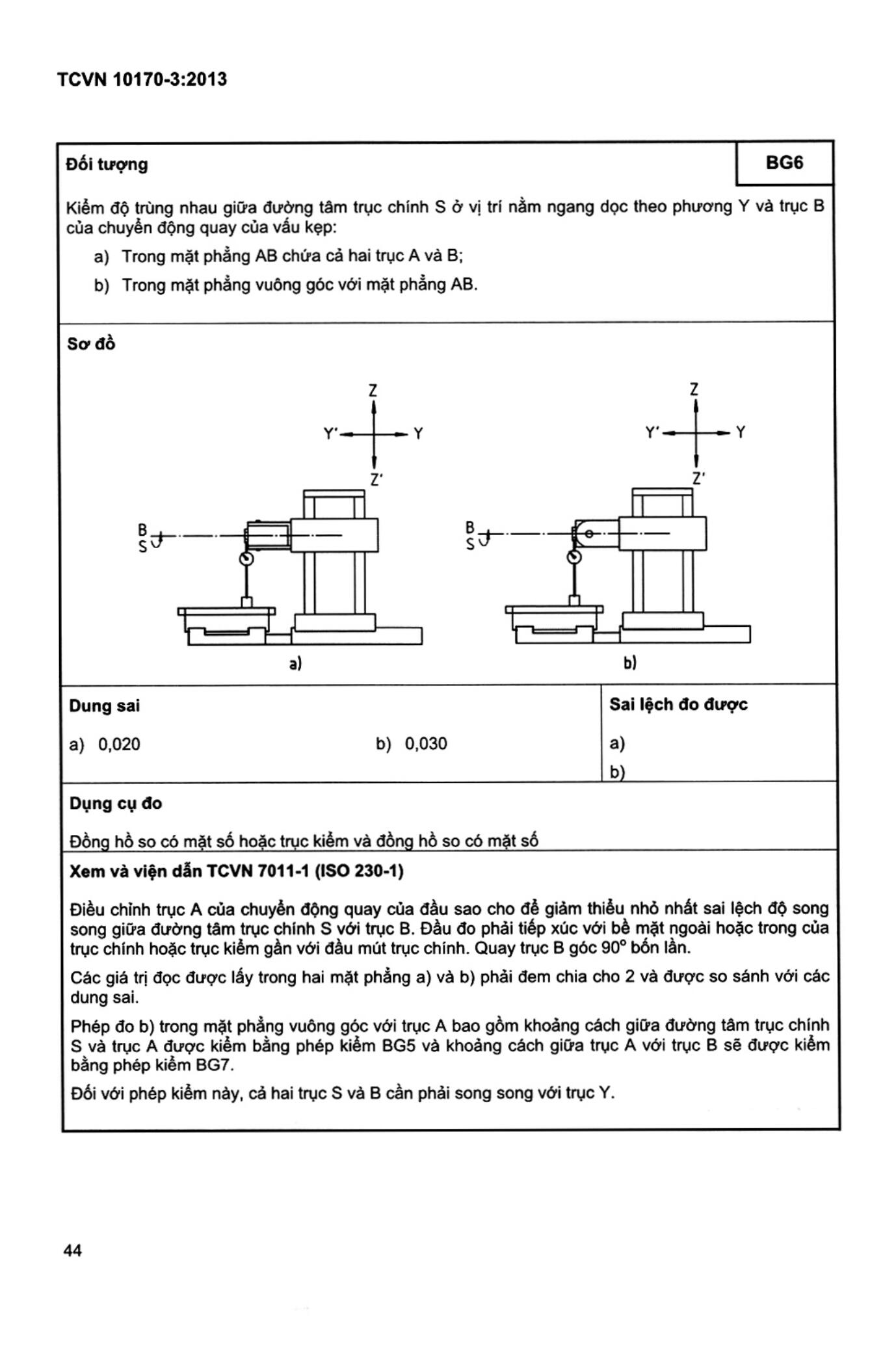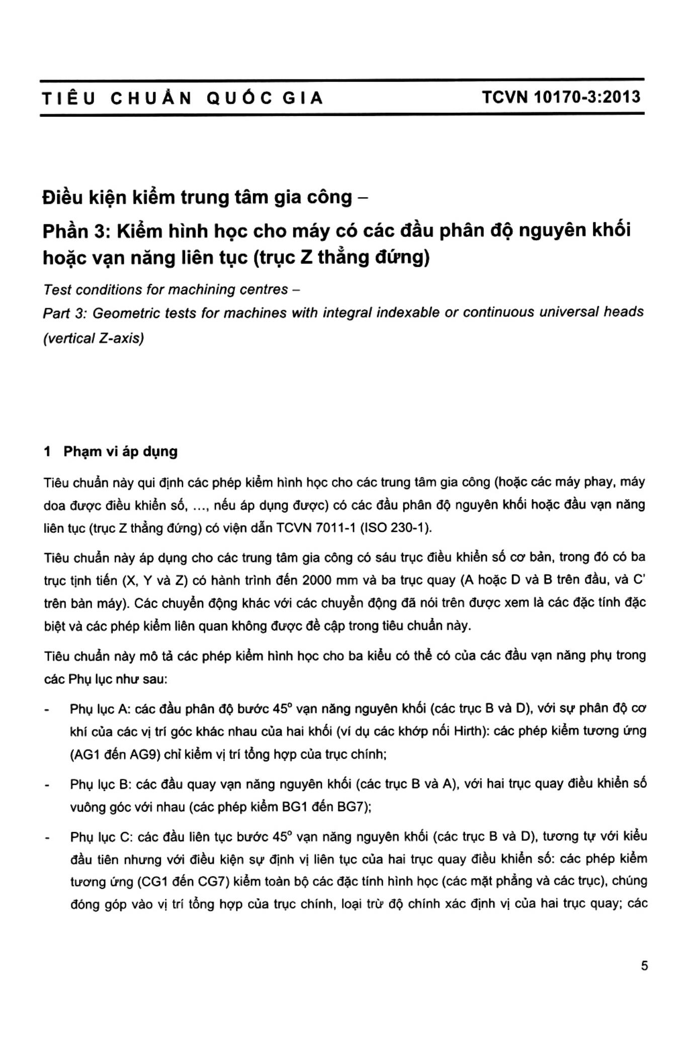 Tiêu chuẩn quốc gia TCVN 10170-3:2013 về Điều kiện kiểm trung tâm gia công - Phần 3: Kiểm hình học cho máy có các đầu phân độ nguyên khối hoặc vạn năng liên tục (trục Z thẳng đứng)