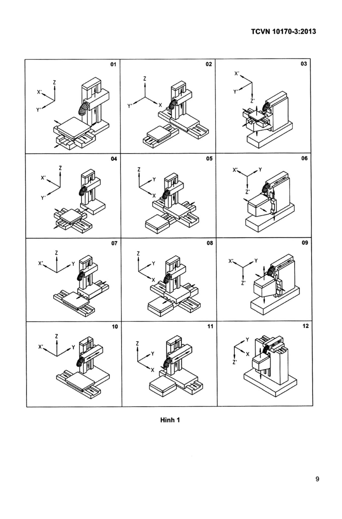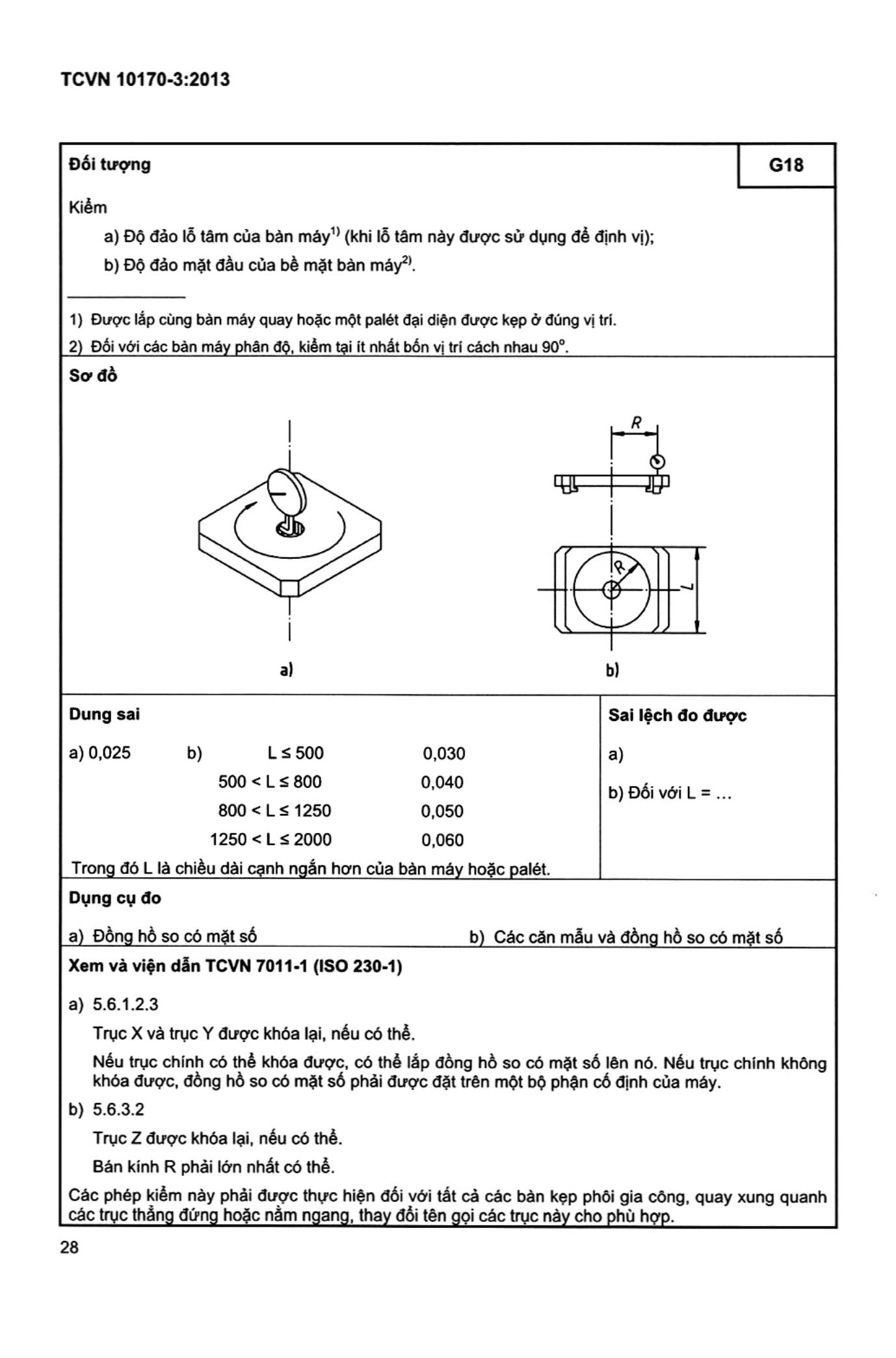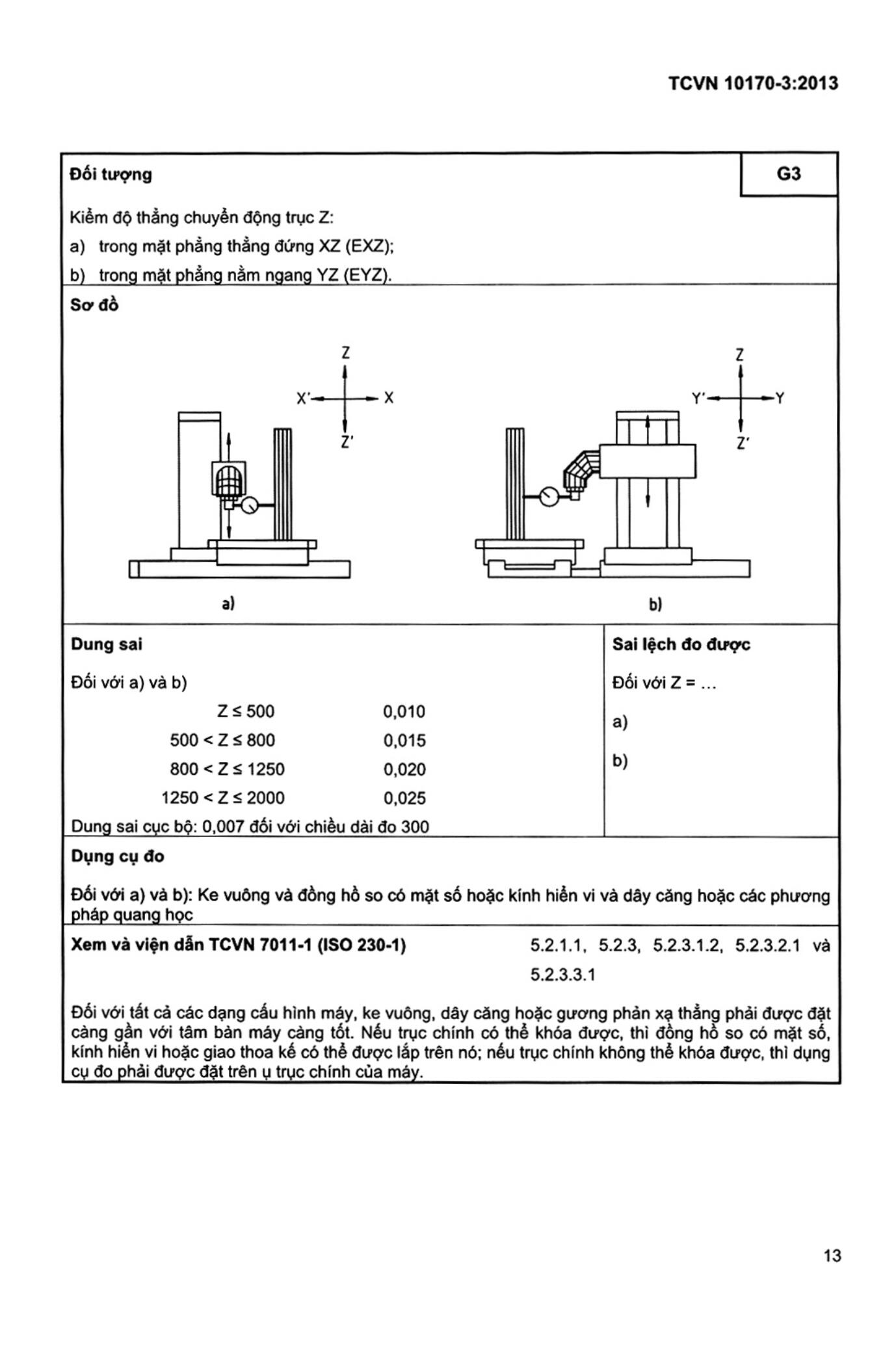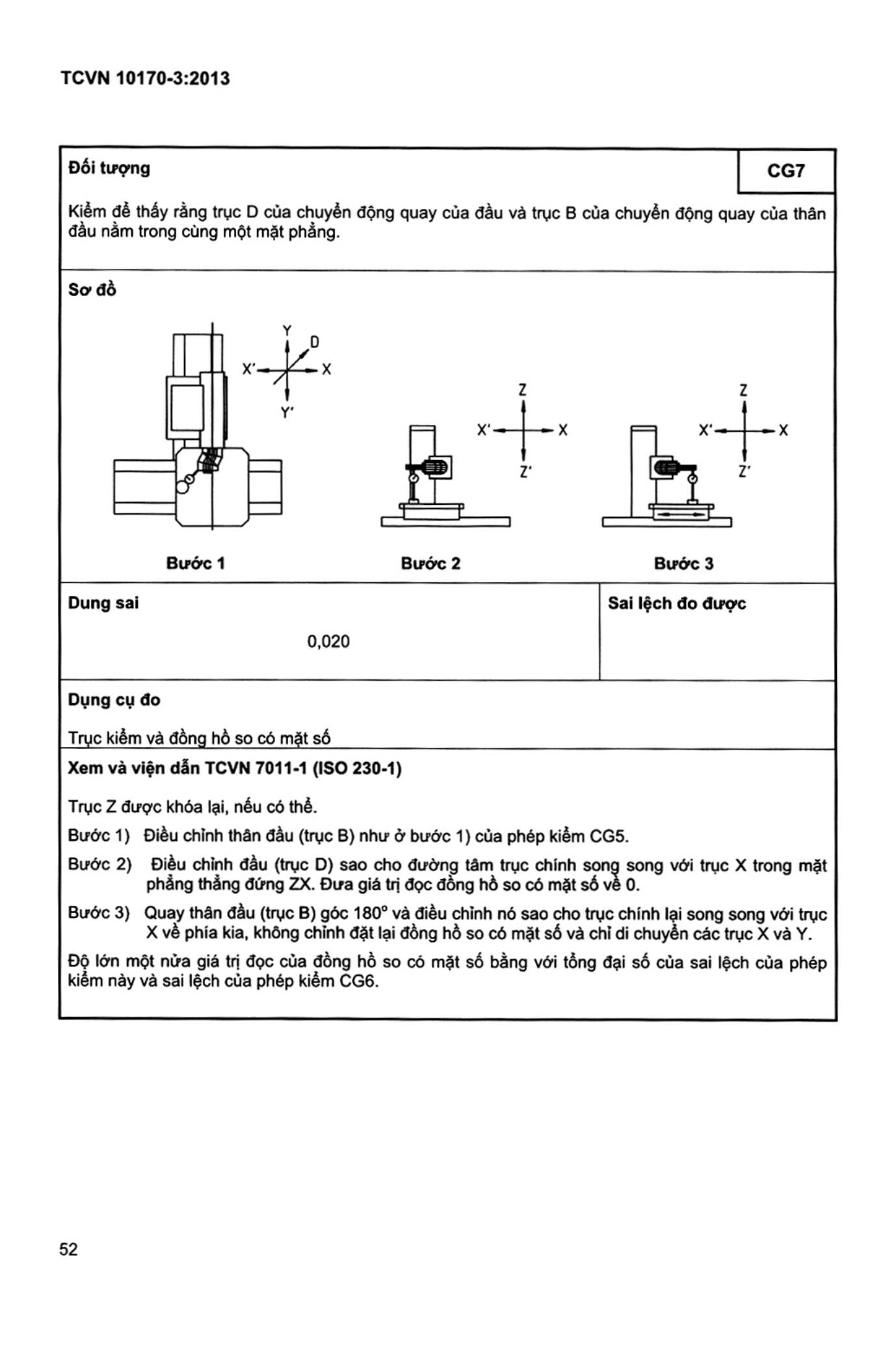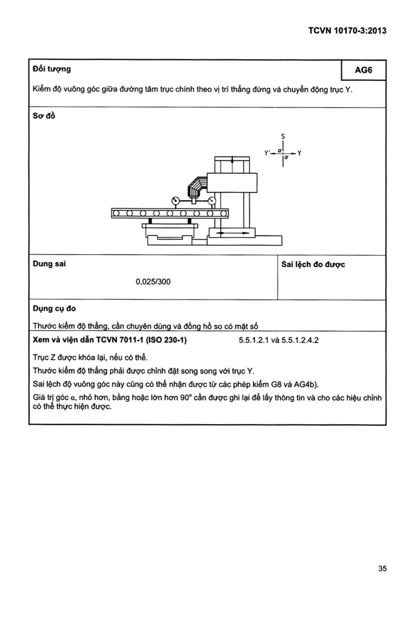 Tiêu chuẩn quốc gia TCVN 10170-3:2013 về Điều kiện kiểm trung tâm gia công - Phần 3: Kiểm hình học cho máy có các đầu phân độ nguyên khối hoặc vạn năng liên tục (trục Z thẳng đứng)