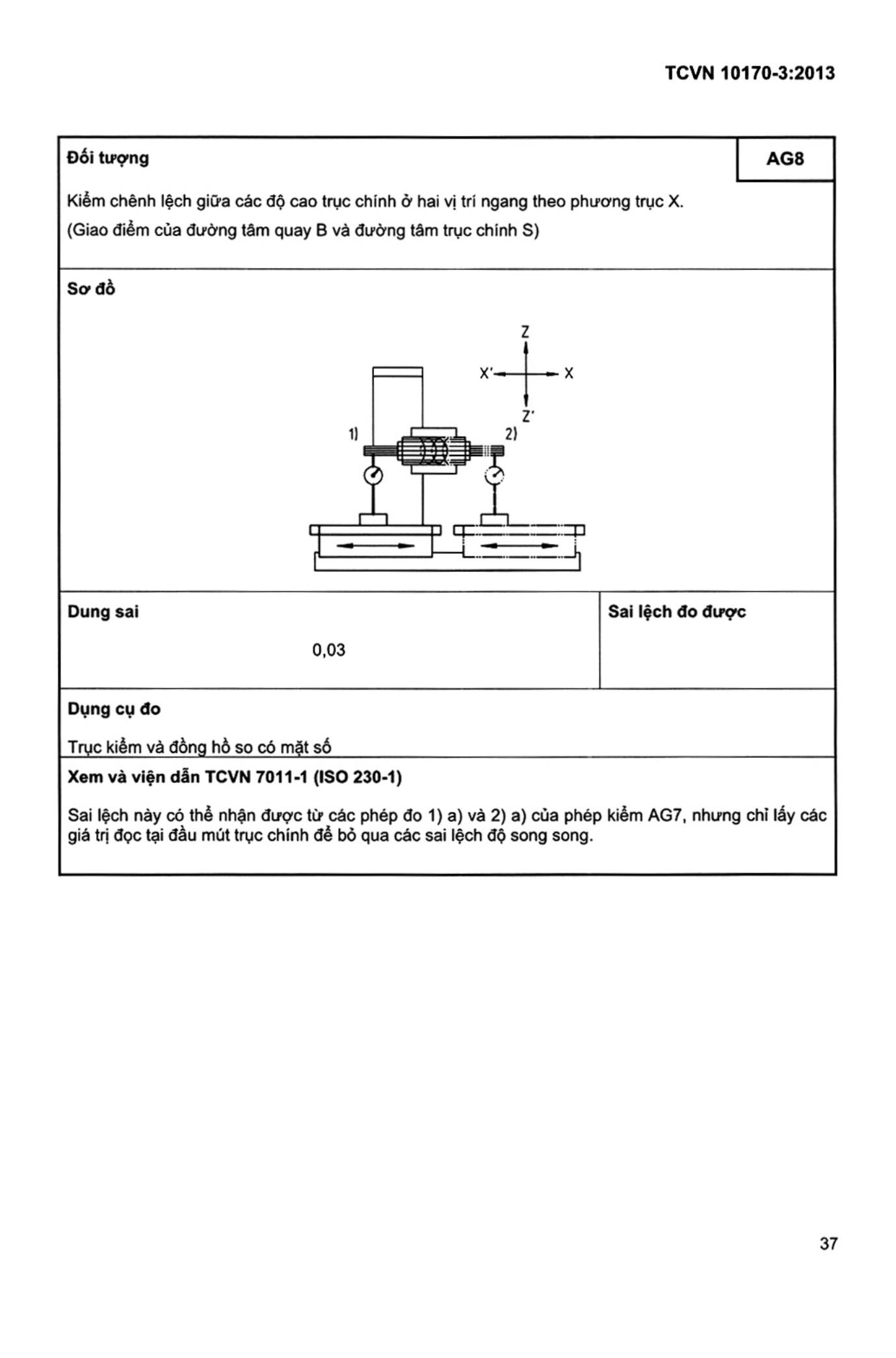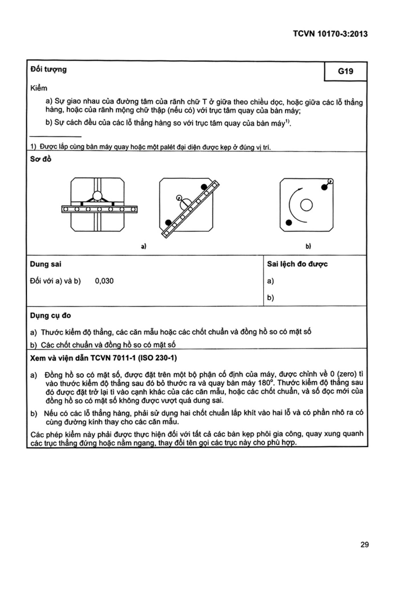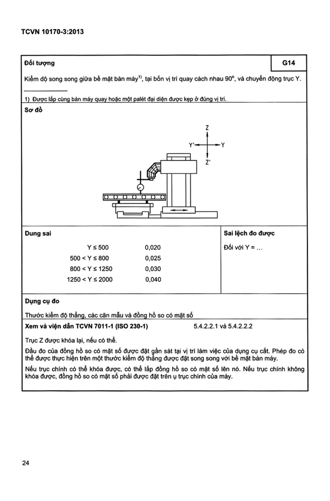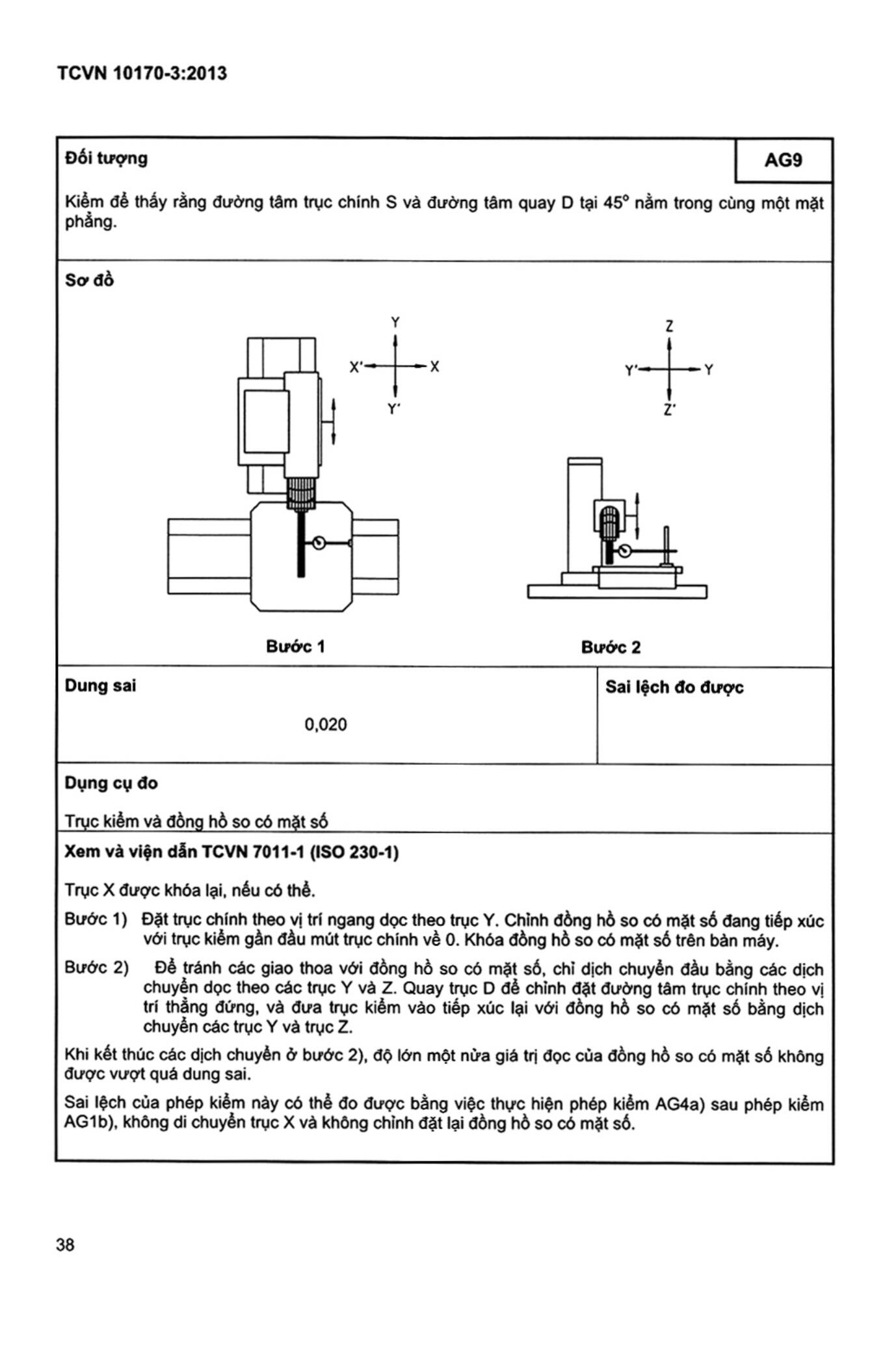 Tiêu chuẩn quốc gia TCVN 10170-3:2013 về Điều kiện kiểm trung tâm gia công - Phần 3: Kiểm hình học cho máy có các đầu phân độ nguyên khối hoặc vạn năng liên tục (trục Z thẳng đứng)