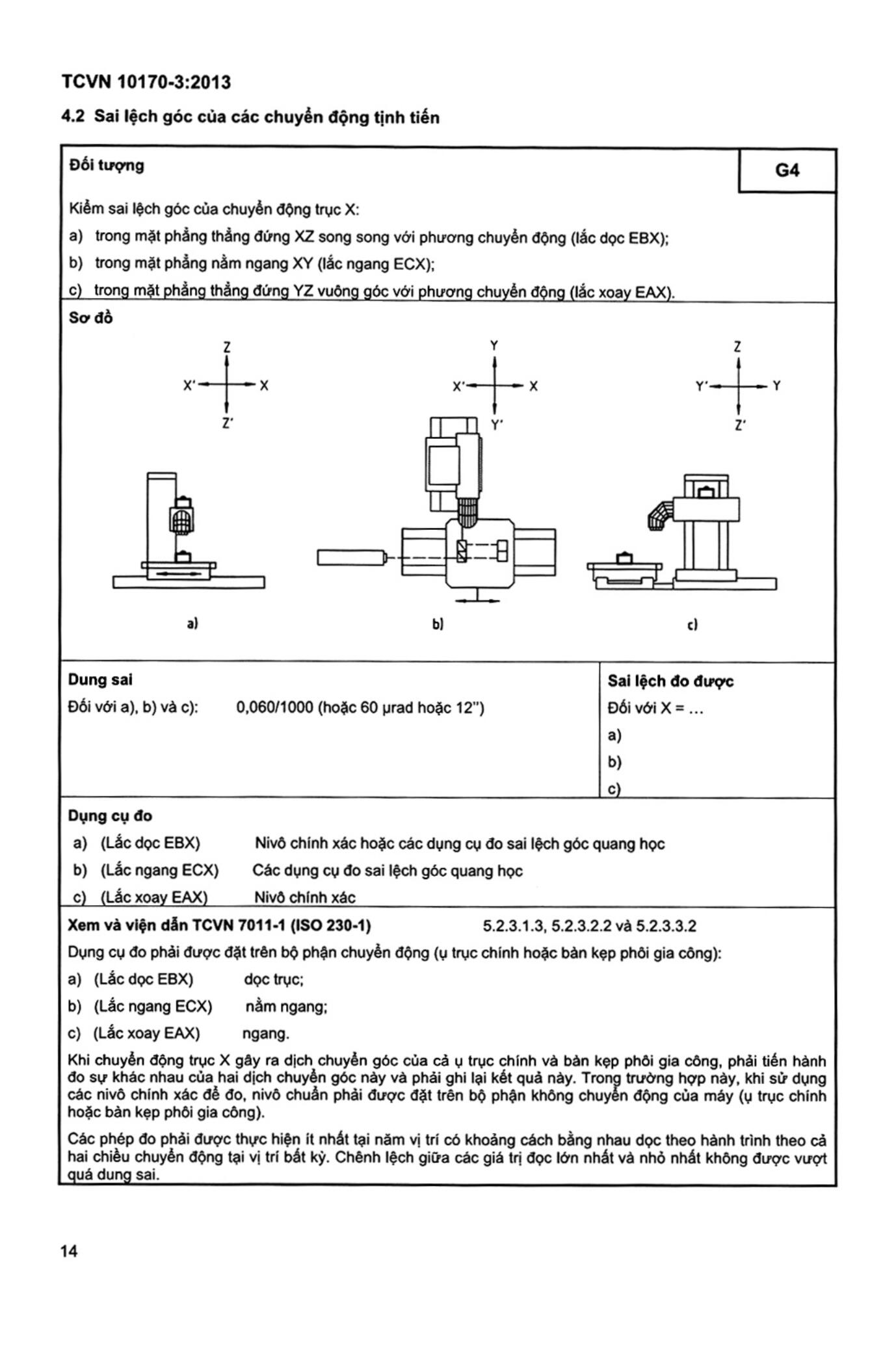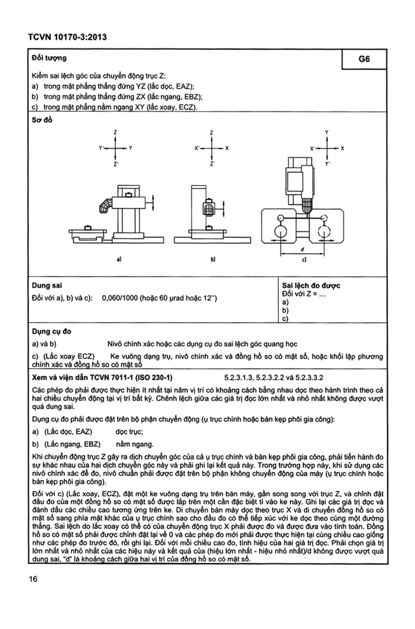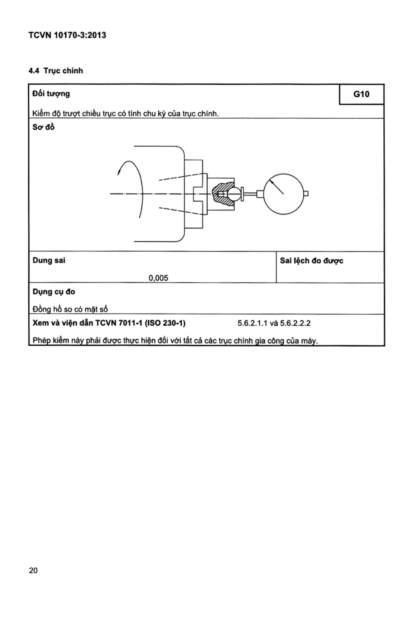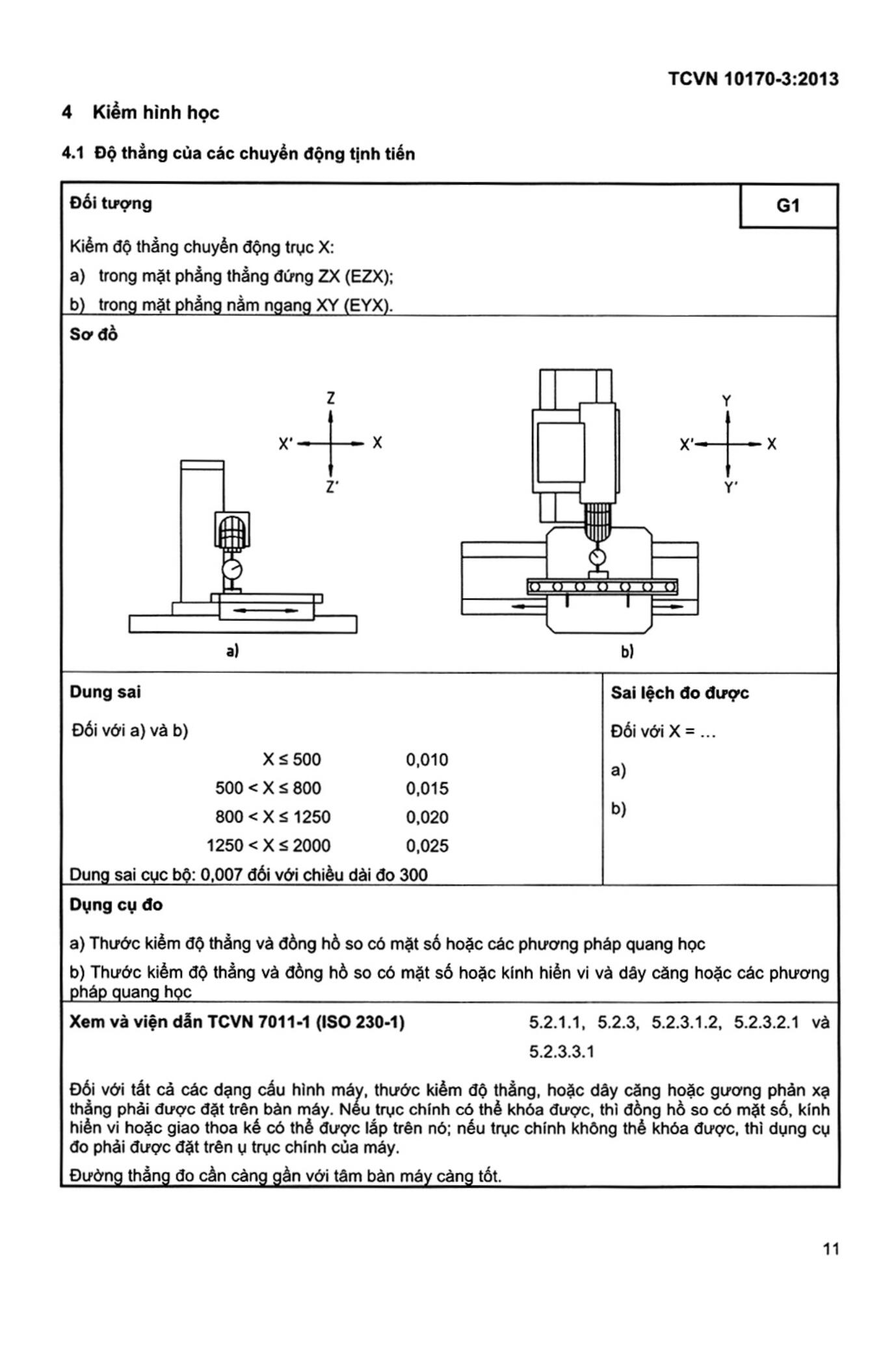 - 4Tiêu chuẩn quốc gia TCVN 7011-1:2007 (ISO 230 - 1 : 1996)về Quy tắc kiểm máy công cụ - Phần 1: Độ chính xác hình học của máy khi vận hành trong điều kiện không tải hoặc gia công tinh