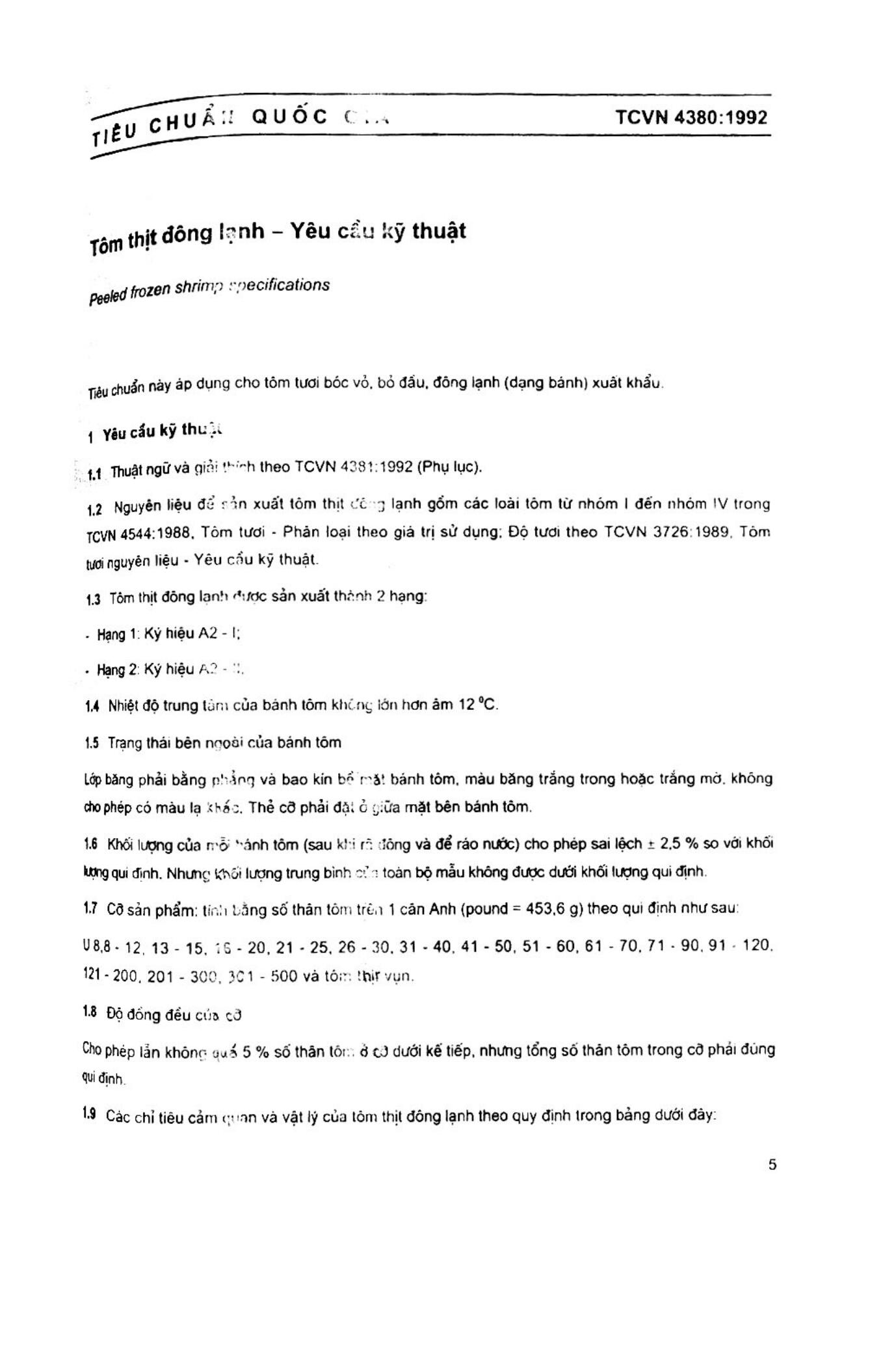 - 18Tiêu chuẩn Việt Nam TCVN 4380:1986 về Thủy sản đông lạnh xuất khẩu - Tôm thịt - Yêu cầu kỹ thuật