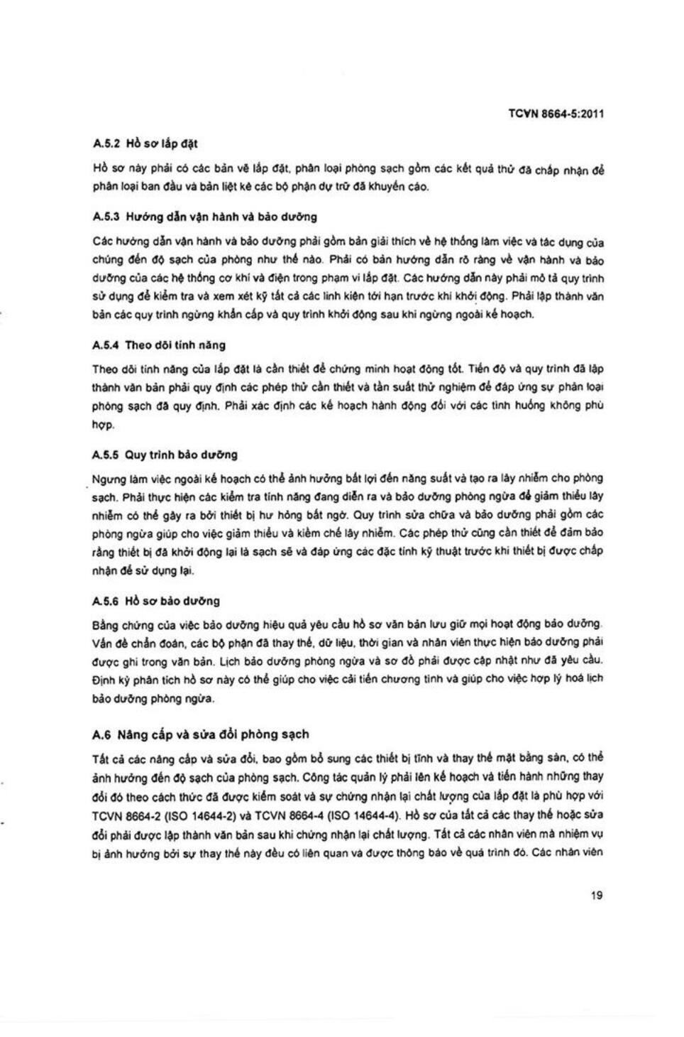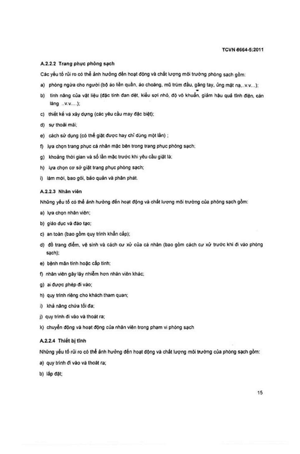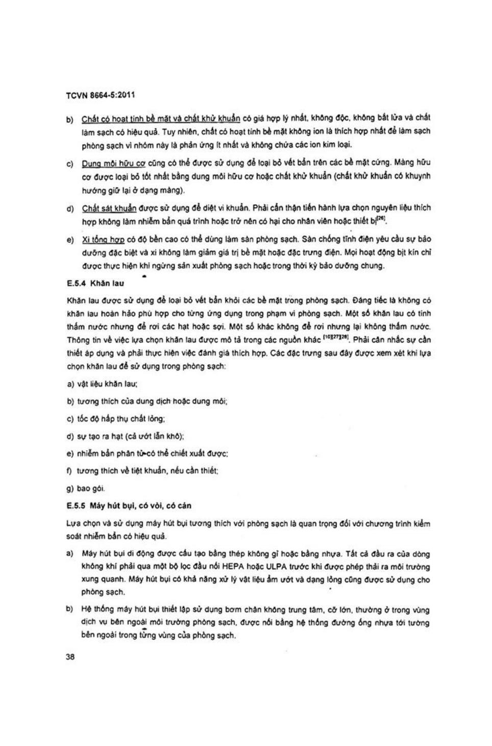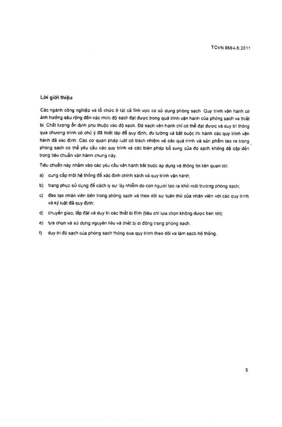 Tiêu chuẩn quốc gia TCVN 8664-5:2011 về Phòng sạch và môi trường kiểm soát liên quan