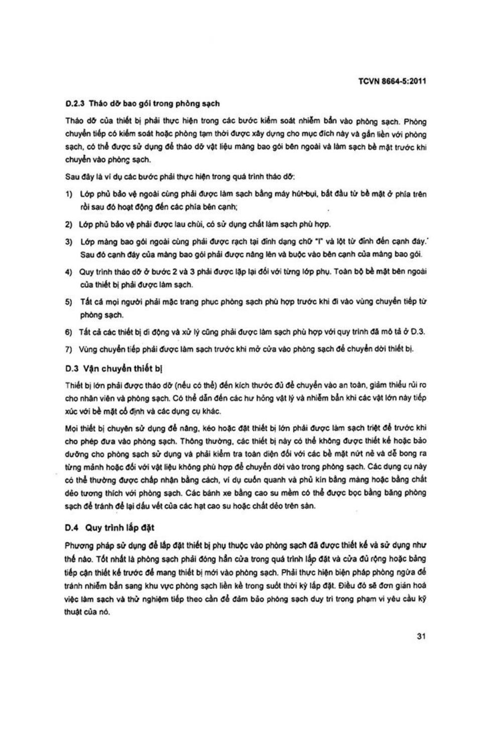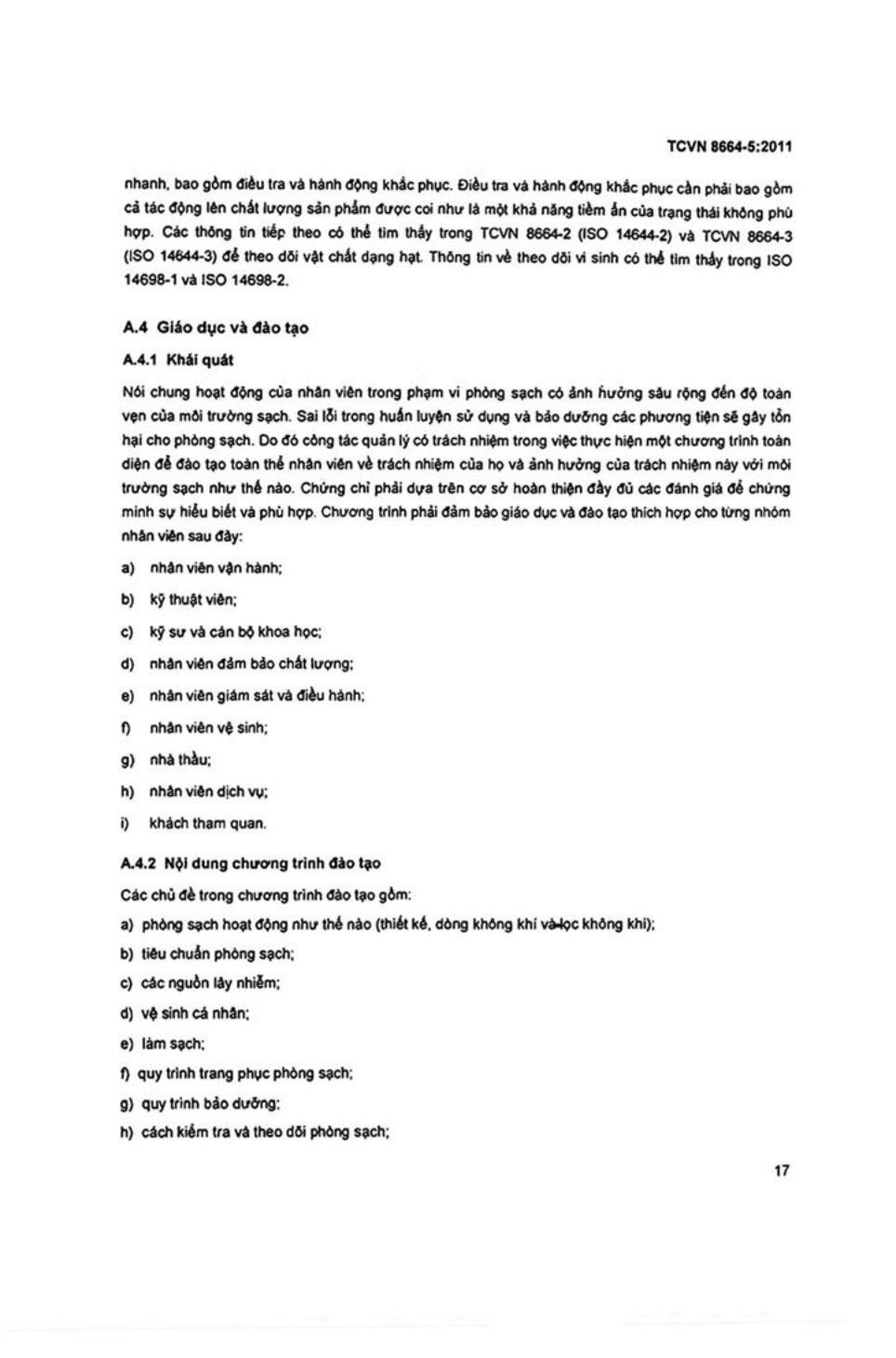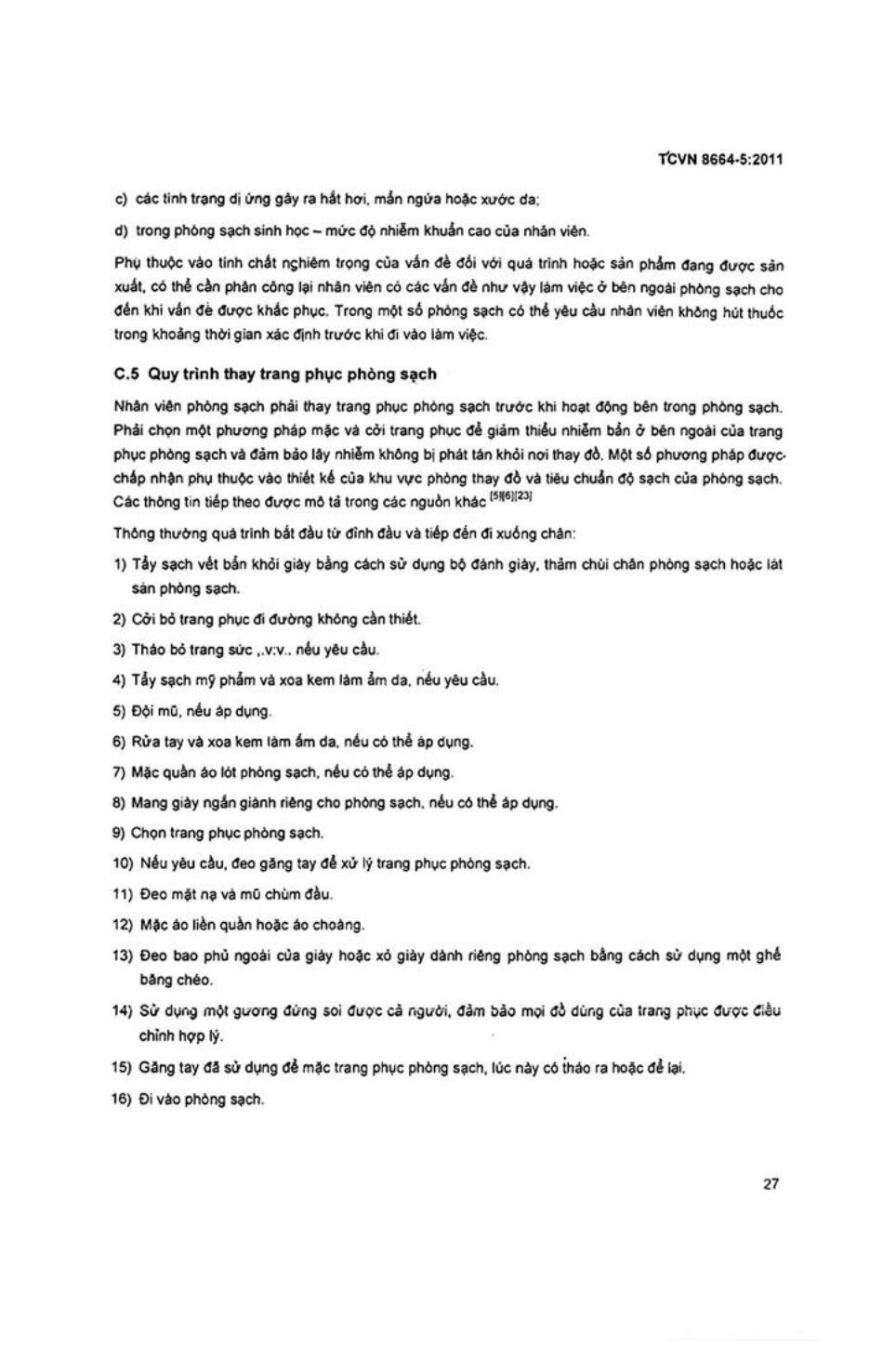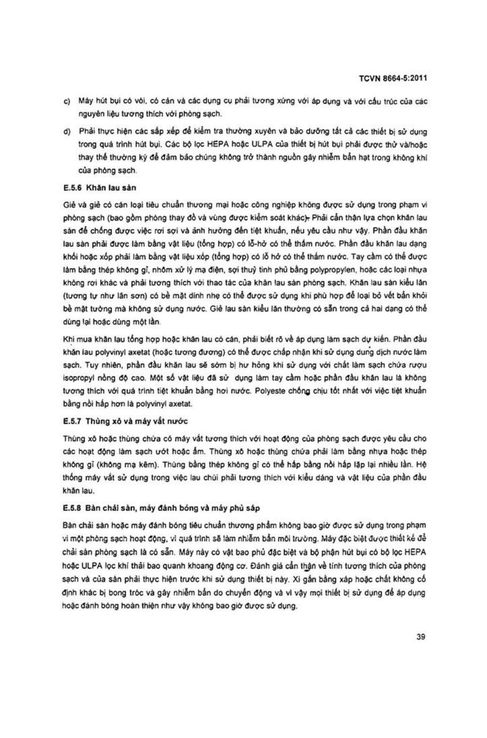 Tiêu chuẩn quốc gia TCVN 8664-5:2011 về Phòng sạch và môi trường kiểm soát liên quan