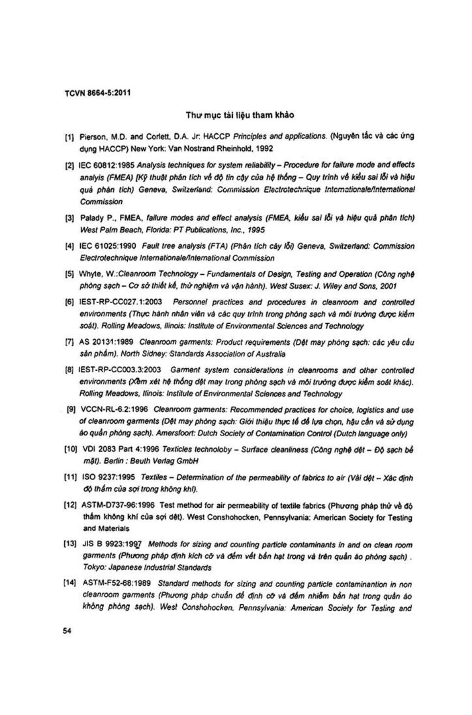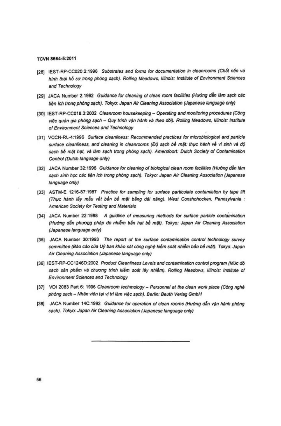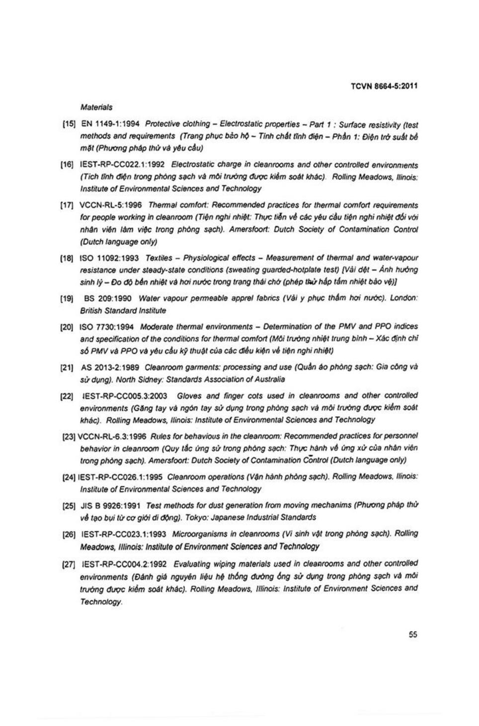 - 1Tiêu chuẩn quốc gia TCVN 8664-3:2011 (ISO 14644-3:2005) về Phòng sạch và môi trường kiểm soát liên quan - Phần 3: Phương pháp thử