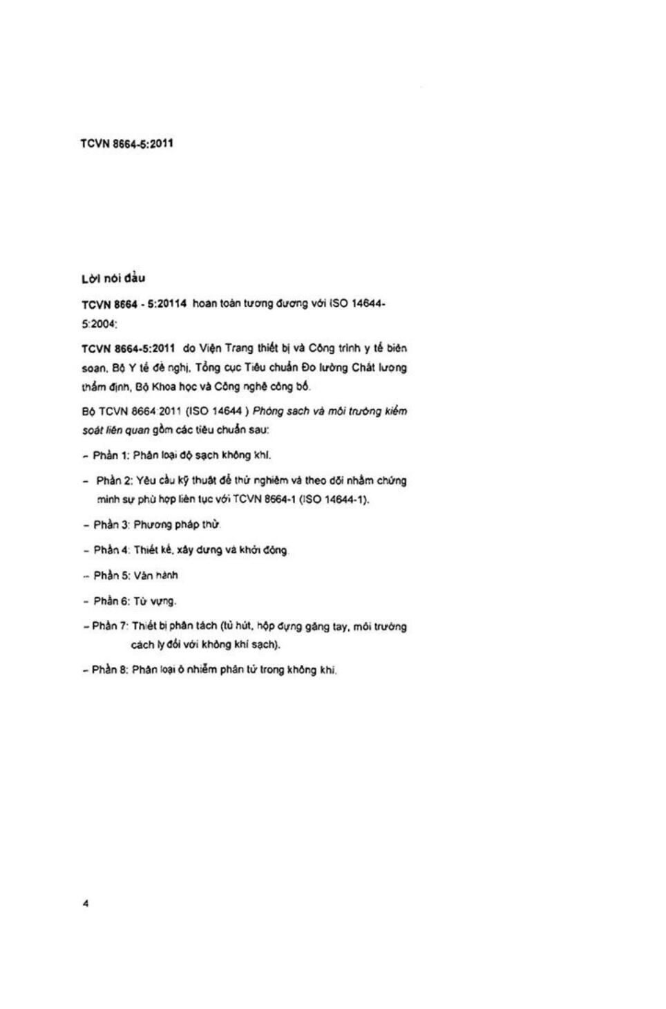 - 4Tiêu chuẩn quốc gia TCVN 8664-4:2011 (ISO 14644-4:2001) về Phòng sạch và môi trường kiểm soát liên quan - Phần 4: Thiết kế, xây dựng và khởi động