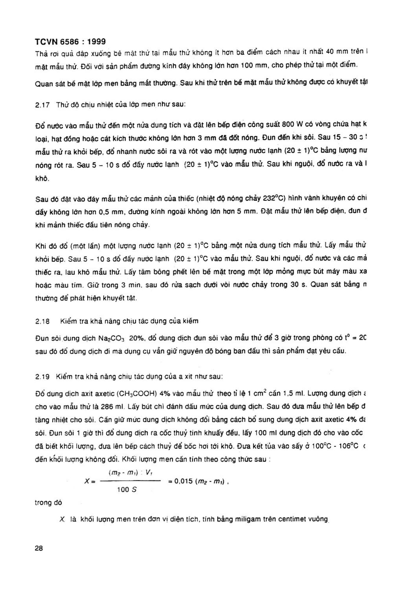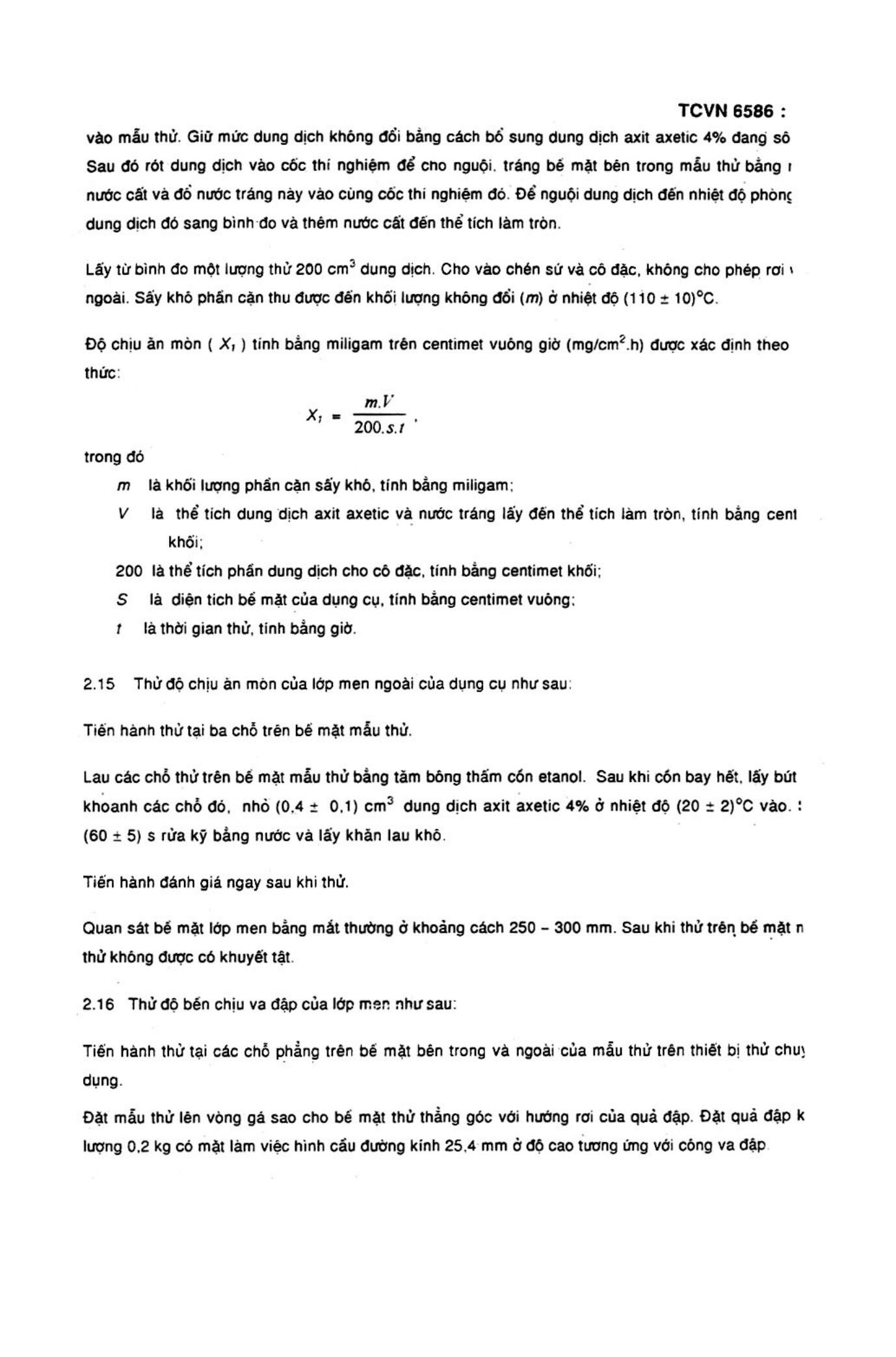 Tiêu chuẩn Việt Nam TCVN 6586:1999 về Dụng cụ nội trợ thông dụng bằng sắt tráng men - Phương pháp thử